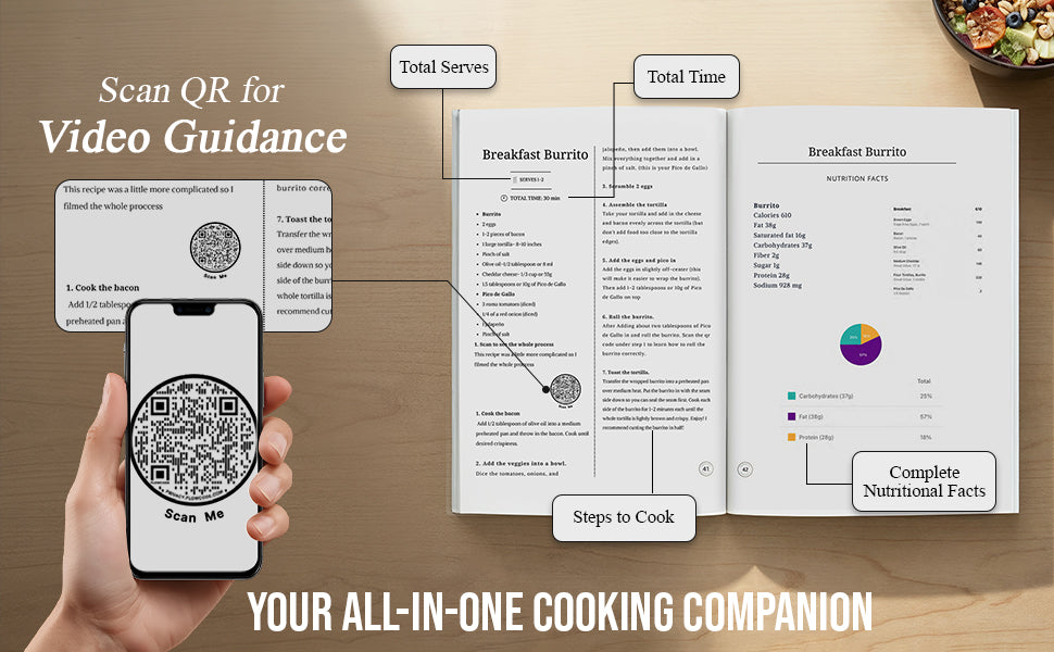 This is exactly why I have added over 50 QR code video demonstrations. Scanning the QR code will take you to a youtube video I created, showing you exactly how to make the recipe.